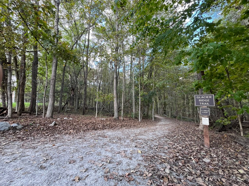 As you pull into the parking lot, you’ll notice that although small, it has some nice amenities, including a rather large public restroom and drinking fountains. This was a pleasant change from our recent hikes, which were far more secluded and offered no such comforts. Nestled right next to the restroom, under the shade of the tree line, begins the park’s single trail: The Glacier Ridge Trail.