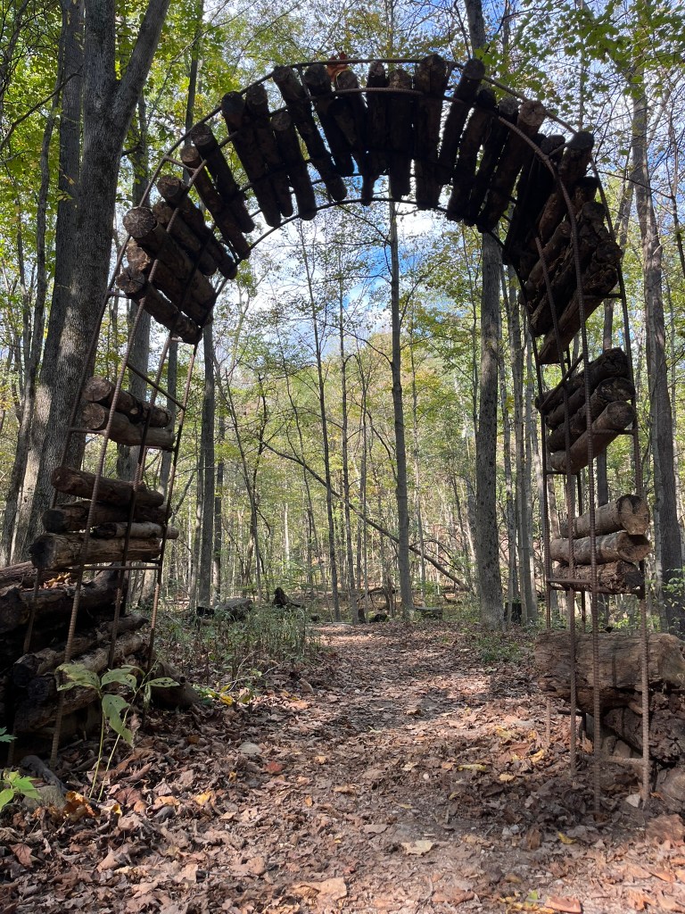Char-Mar Ridge offers a few neat extras beyond the trail itself. Right at the start is a natural play area that kids will love. A beautiful archway made of logs and branches leads to a play space featuring log obstacles, teepees, and even access to a small creek where little explorers can check out local water life.