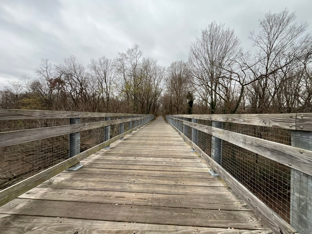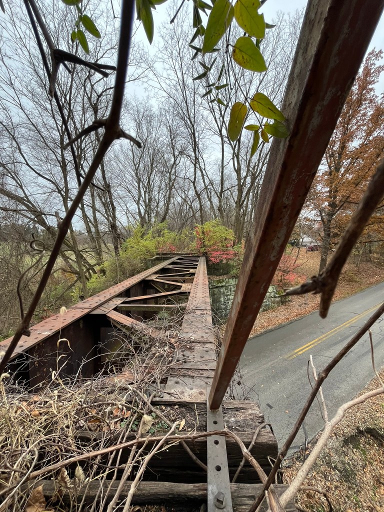 On our walk back, we stumbled upon an unexpected find: an old railroad track hanging over a side road along Old 3C. I had passed underneath it many times on runs but never noticed a path leading up to it. We climbed up and discovered the tracks fenced off at the top—definitely for safety—but still intact, offering a fun glimpse into the area’s history. Moments like that remind you how much you notice when you simply slow down.