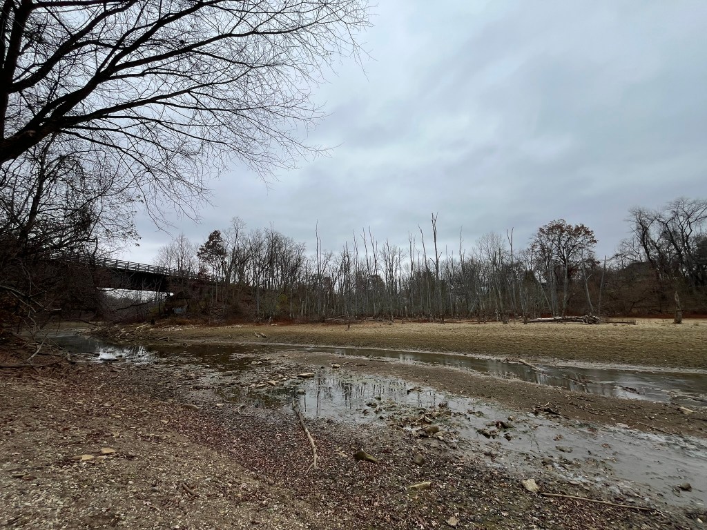 Less than a quarter mile in, a large wooden bridge crosses a deep, winding river. Normally the water sits high and the banks are inaccessible, but Central Ohio has been experiencing a months-long drought. The low water levels revealed areas that are usually submerged, offering a rare chance to explore.