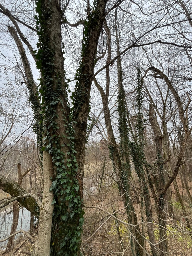 A small unmarked dirt path led down from the bridge into the trees. It’s not official, but it’s obvious enough that others have walked it. Once we reached the riverbank, we realized we could follow it—something you normally cannot do—for nearly a mile.