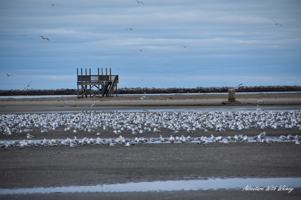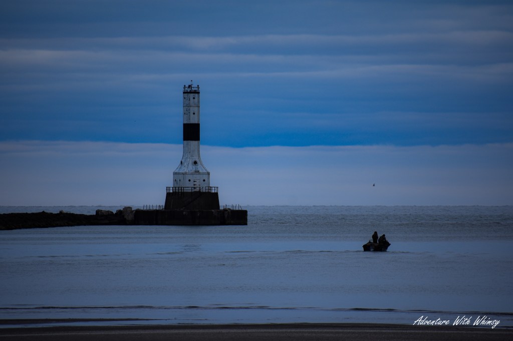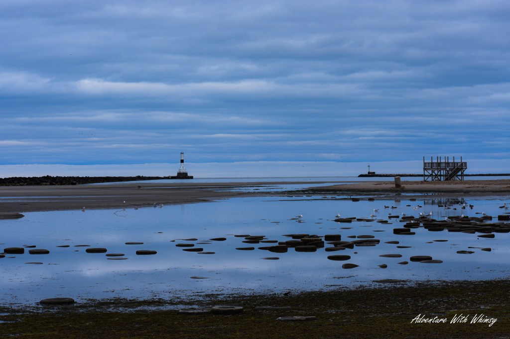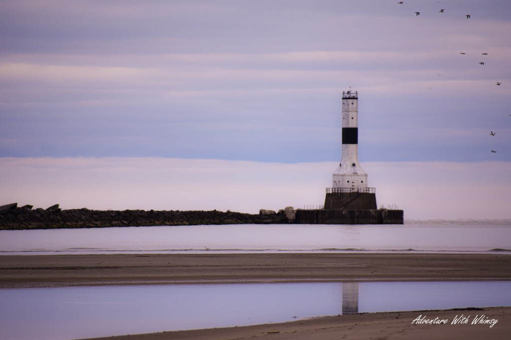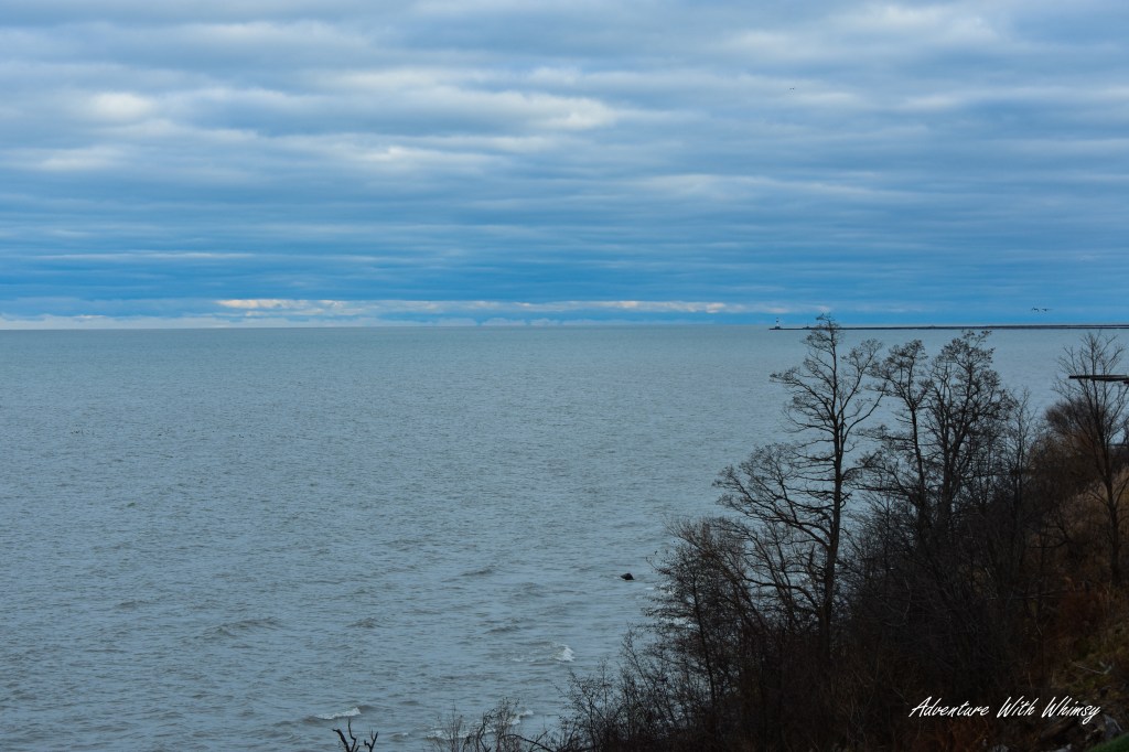 The next morning, after soaking in the sunrise from our window-lined Airbnb and grabbing a quick breakfast, we geared up for the chilly weather and made our way to Conneaut Township Park, home to the best views of the West Breakwater Lighthouse.