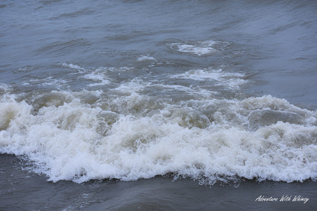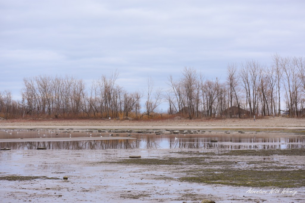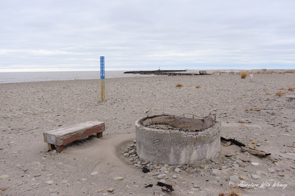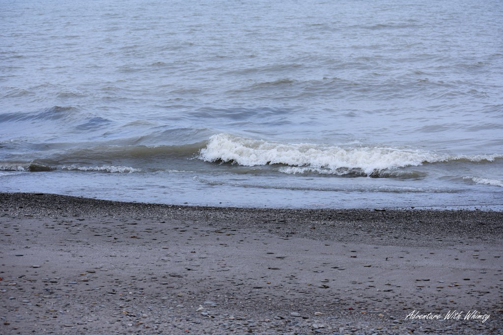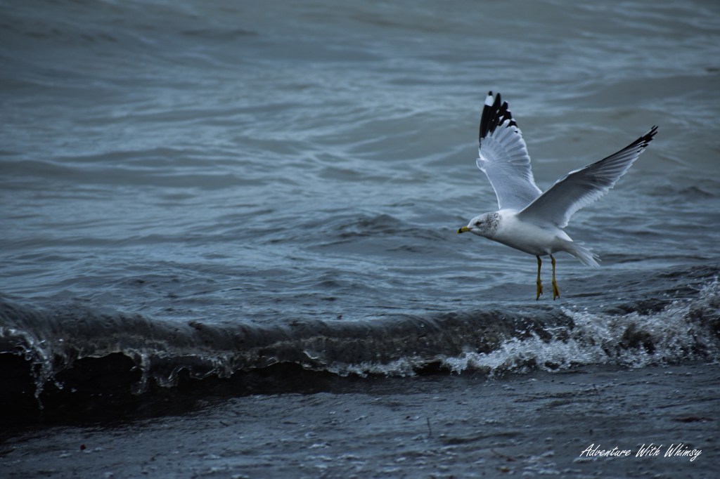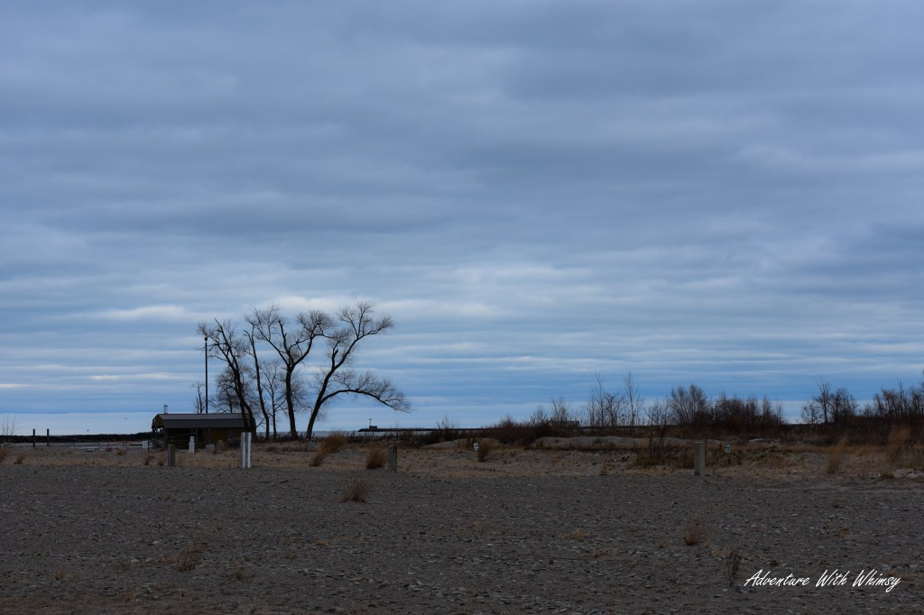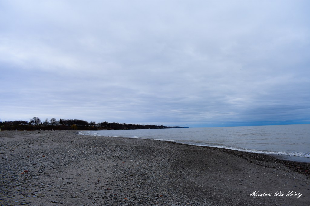 It was about 30°F that morning, which meant we shared the entire beachfront with maybe two other brave souls. The wind along Lake Erie can be brutal—and with a winter storm rolling in, the sky was blanketed with heavy gray clouds and choppy dark waves that created a moody, atmospheric beauty.