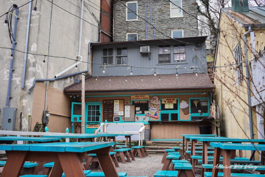 After exploring the older sections of town, we wandered into some of the newer areas. While there was a noticeable shift from Civil War–era streets, the charm remained. This part of Harpers Ferry had a great small-town feel, with restaurants, pubs, a pizzeria, cozy cafés, jewelry shops, and a general goods store stocked with souvenirs and hiking essentials.