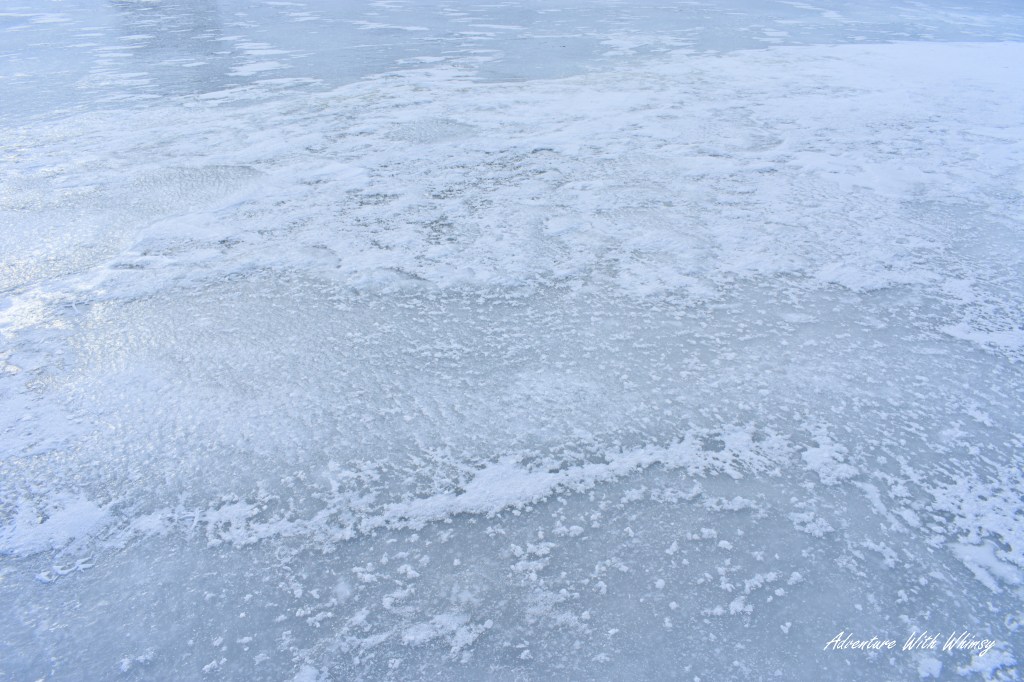 What really surprised me was just how solid the ice felt. I stomped. I punched. No give whatsoever. It felt as sturdy as the asphalt back in the parking lot. Even more shocking? The traction. I fully expected to slide around like a baby deer on ice, but the surface was rough and textured, almost like it had frozen mid-wave.