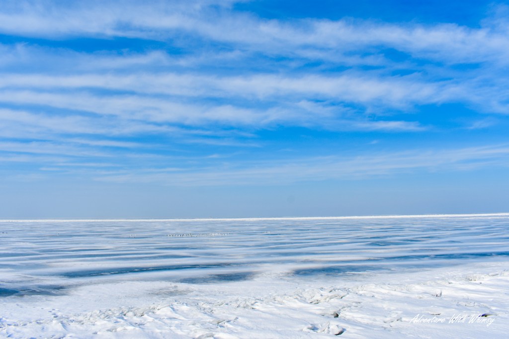 Standing at the shoreline, looking out across what felt like an ocean of ice, the scale hit us immediately. The comfort of “it’s not that far” completely disappears on a Great Lake. The horizon blurs. Depth becomes unimaginable. Distance becomes abstract.