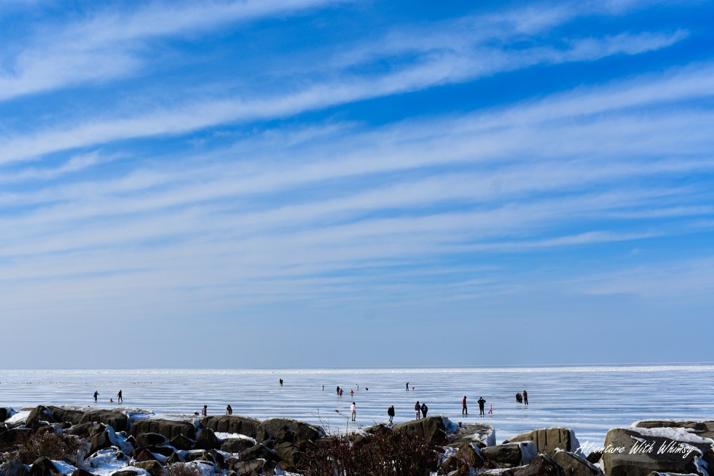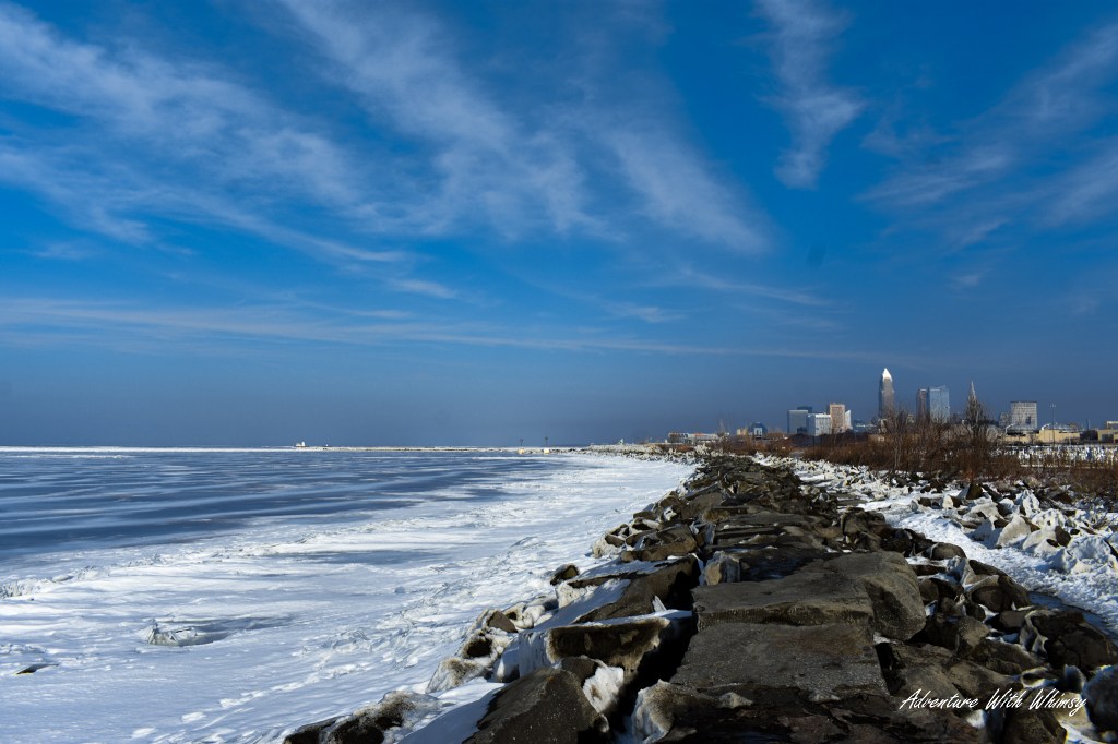 This time, our home base was the charming town of Vermilion—a cozy little lakeside community that serves as the perfect headquarters for winter and summer adventures alike. We’ll dive deeper into Vermilion in a future post, but for this President’s Day trip, it was our launching point. And our first stop? The legendary Edgewater Park in Cleveland.