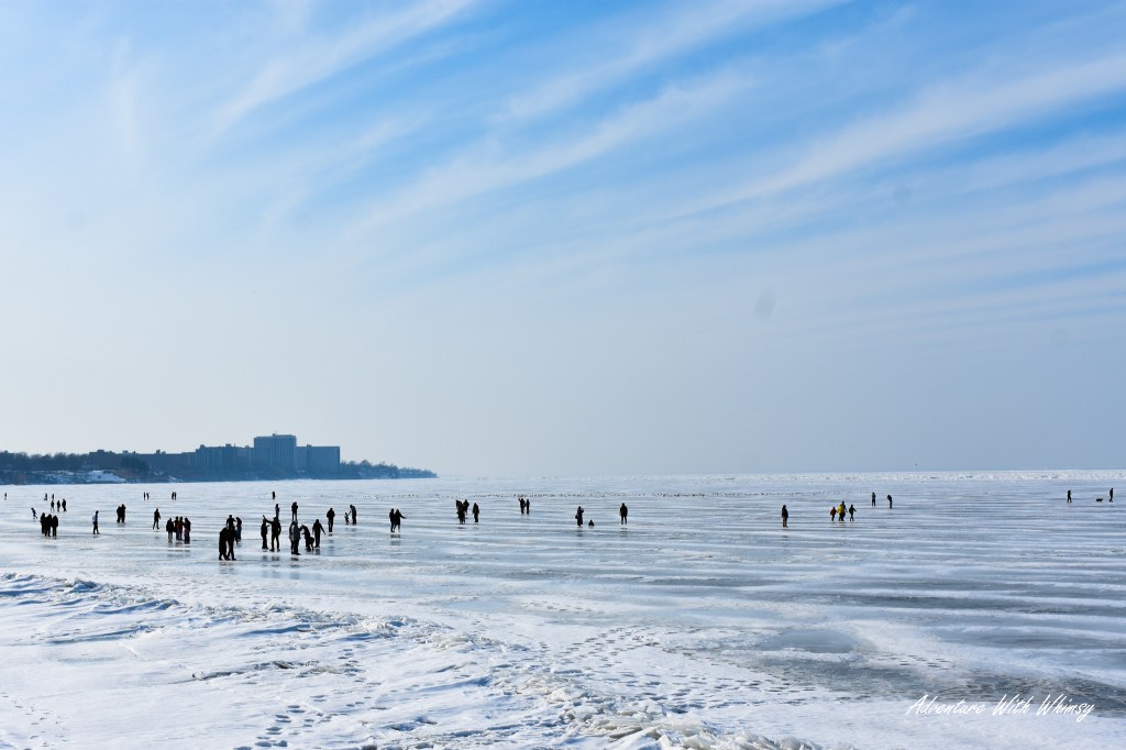 People were walking on Lake Erie.