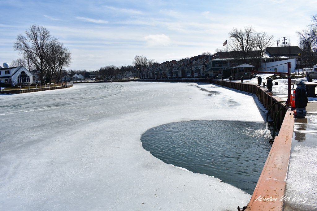 After settling in, we bundled back up and stepped into the crisp winter air to explore downtown and catch our first glimpse of the frozen lake.